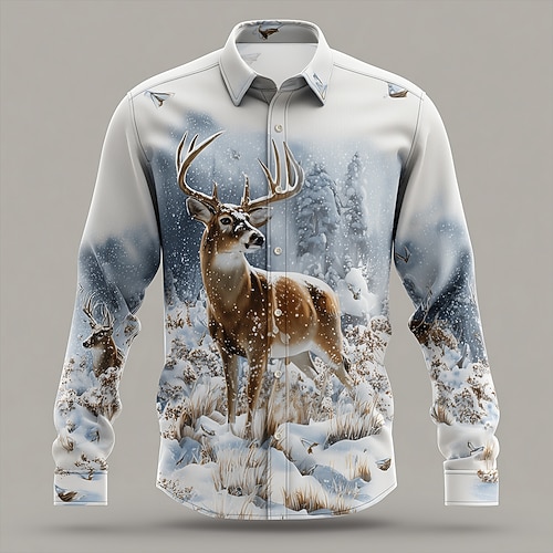 Per uomo Animale Renna Natura e paesaggi Camicia Camicia con Bottoni Manica Lunga Vintage Retrò All'aperto Casuale Caccia Primavera Autunno Collo ripiegato Stampa 3D camicie con colletto Bianco 1