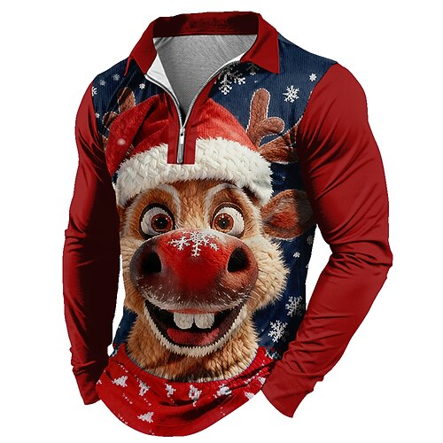 Per uomo Astratto Geometrico Polo Manica Lunga Magliette polo Bavero Business Casual Athleisure Abbigliamento quotidiano Stampa 3D Polo con cerniera a un quarto Primavera Autunno Inverno Rosso Blu