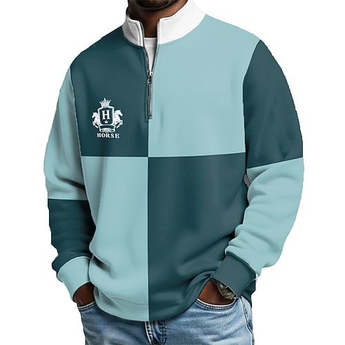 Per uomo Plaid Polo con zip Maglia da golf Manica Lunga Magliette polo Camicie con Colletto Casual Abbigliamento da vacanza Abbigliamento Formale Abbigliamento da festa Stampa 3D Polo con cerniera a