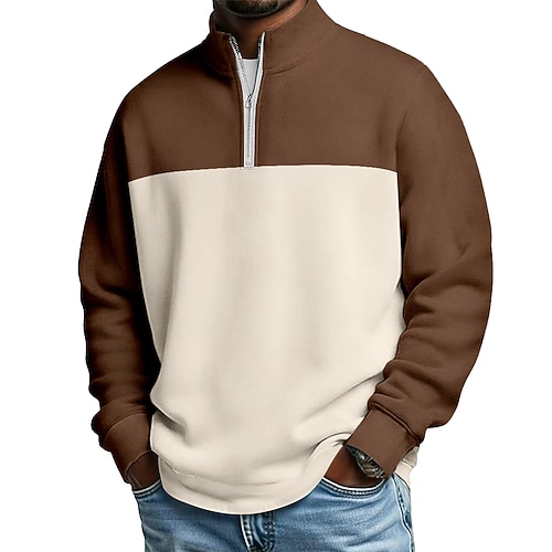 Per uomo Blocco di colori Polo con zip Manica Lunga Magliette polo Colletto alla coreana Casual Scuola Athleisure Ferie Abbigliamento quotidiano Stampa 3D Polo con cerniera a un quarto Primavera