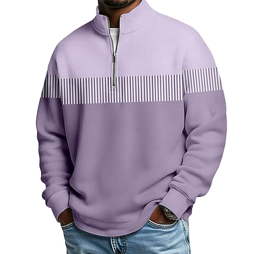 Per uomo A righe Magliette Polo a Nido d'Ape Polo da rugby Manica Lunga Magliette polo Camicie con Colletto Casual Athleisure Abbigliamento quotidiano Bottoni Primavera Autunno Inverno Blu Viola Verde
