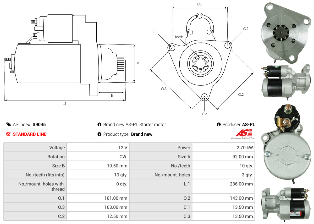 AS-PL Starter S9045 Universal 12V für DAF FORD D7NN-11000-B D0NN11000B D0NN11000A