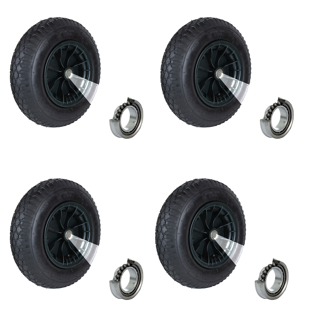 Baumarktplus 4x Schubkarrenrad 4.80 / 4.00-8 4PR Luftbereifung Ersatzrad mit Achse