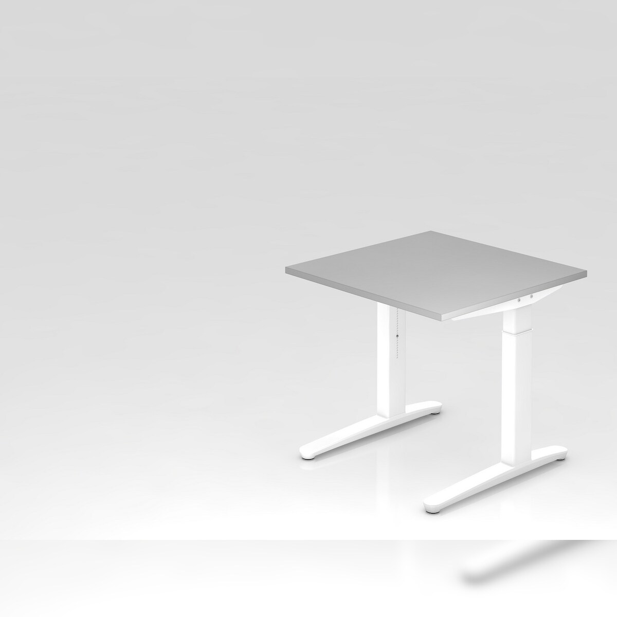 PROREGAL Schreibtisch Mika | Weiß | Graues Gestell poliert | BxT 80x80cm | Arbeitshöhe 65-85cm | höhenjustierbar, 1cm Raster | C-Fuß-Gestell