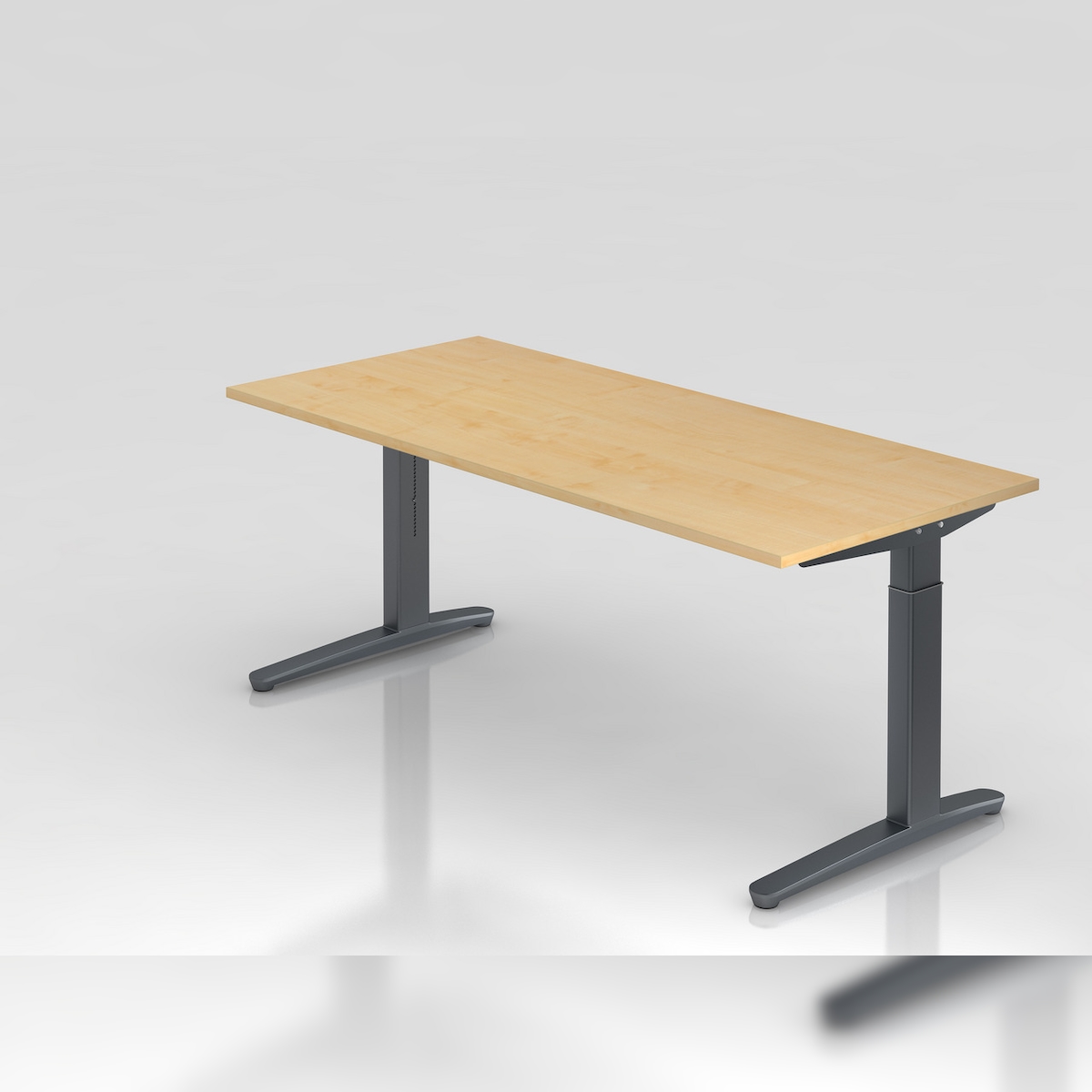 PROREGAL Schreibtisch Mika | Ahorn | Silber Gestell | BxT 180x80cm | Arbeitshöhe 65-85cm | höhenjustierbar, 1cm Raster | C-Fuß-Gestell | Bürotisch
