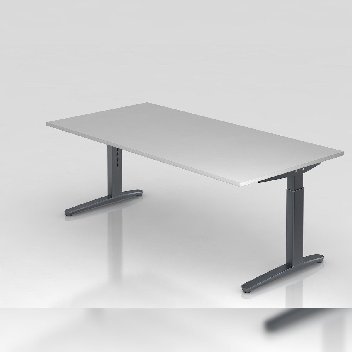 PROREGAL Schreibtisch Mika | Grau | Weißes Gestell poliert | BxT 180x80cm | Arbeitshöhe 65-85cm | höhenjustierbar, 1cm Raster | C-Fuß-Gestell