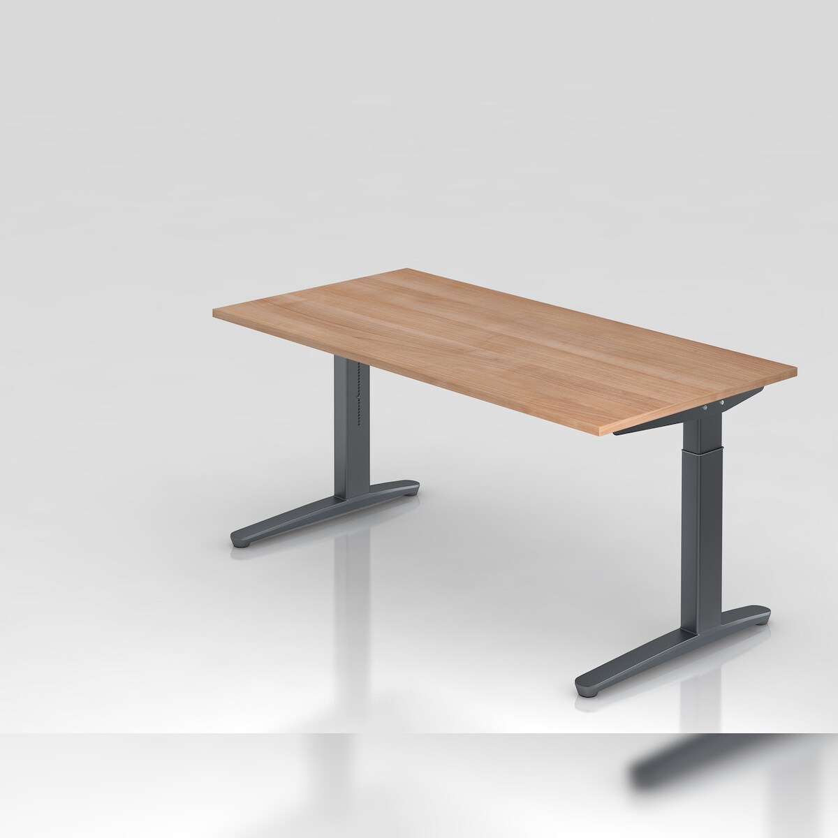 PROREGAL Schreibtisch Mauri | Buche | Silber Gestell | BxT 160x80cm | Arbeitshöhe 68-86cm | höhenjustierbar, 2cm Raster | C-Fuß-Gestell