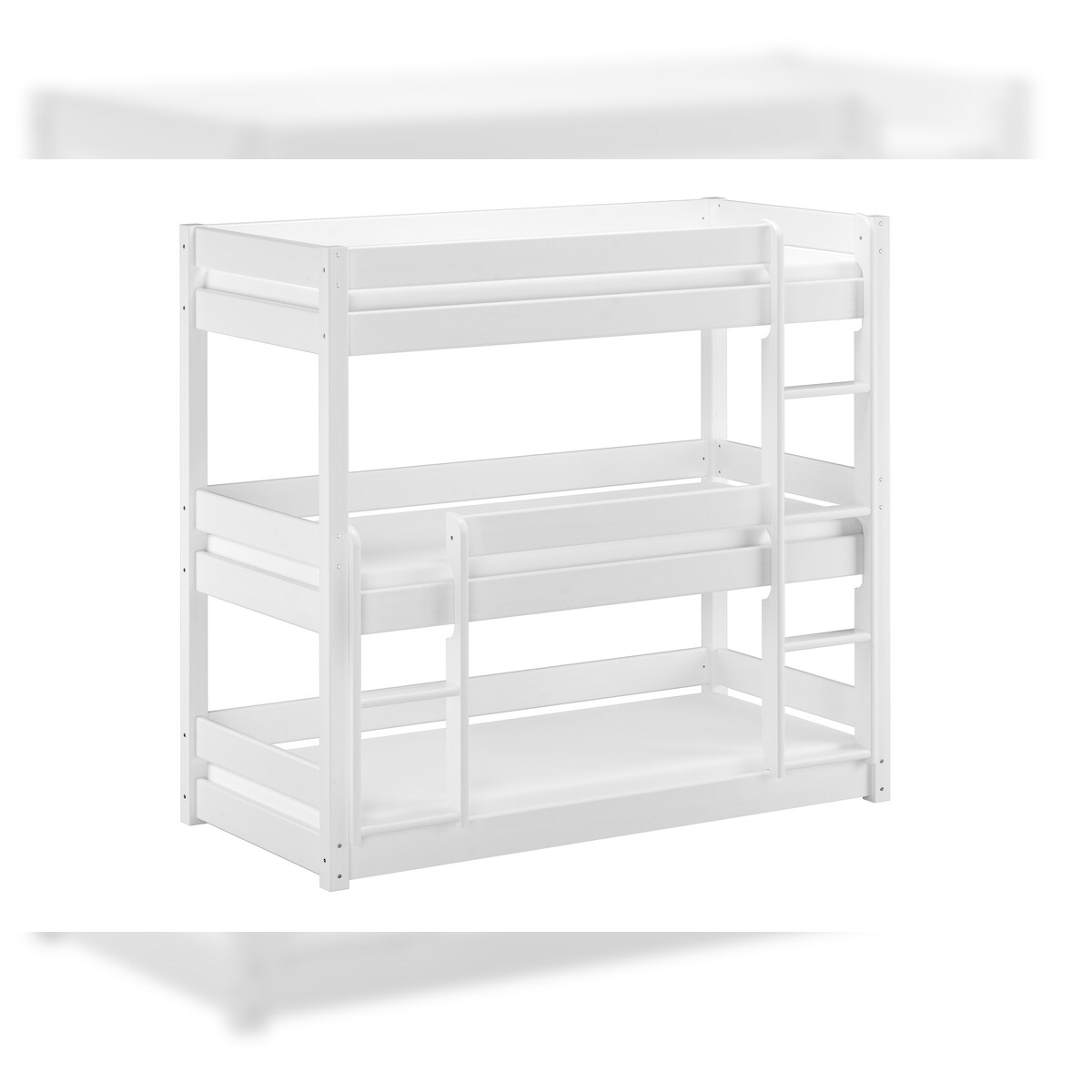 Erst-Holz Weißes Dreier-Etagenbett 3 Liegeflächen Kiefer massiv weiß 80x200 Zubehör wählbar V-60.03-08W Rollrost und Matratze inkl.
