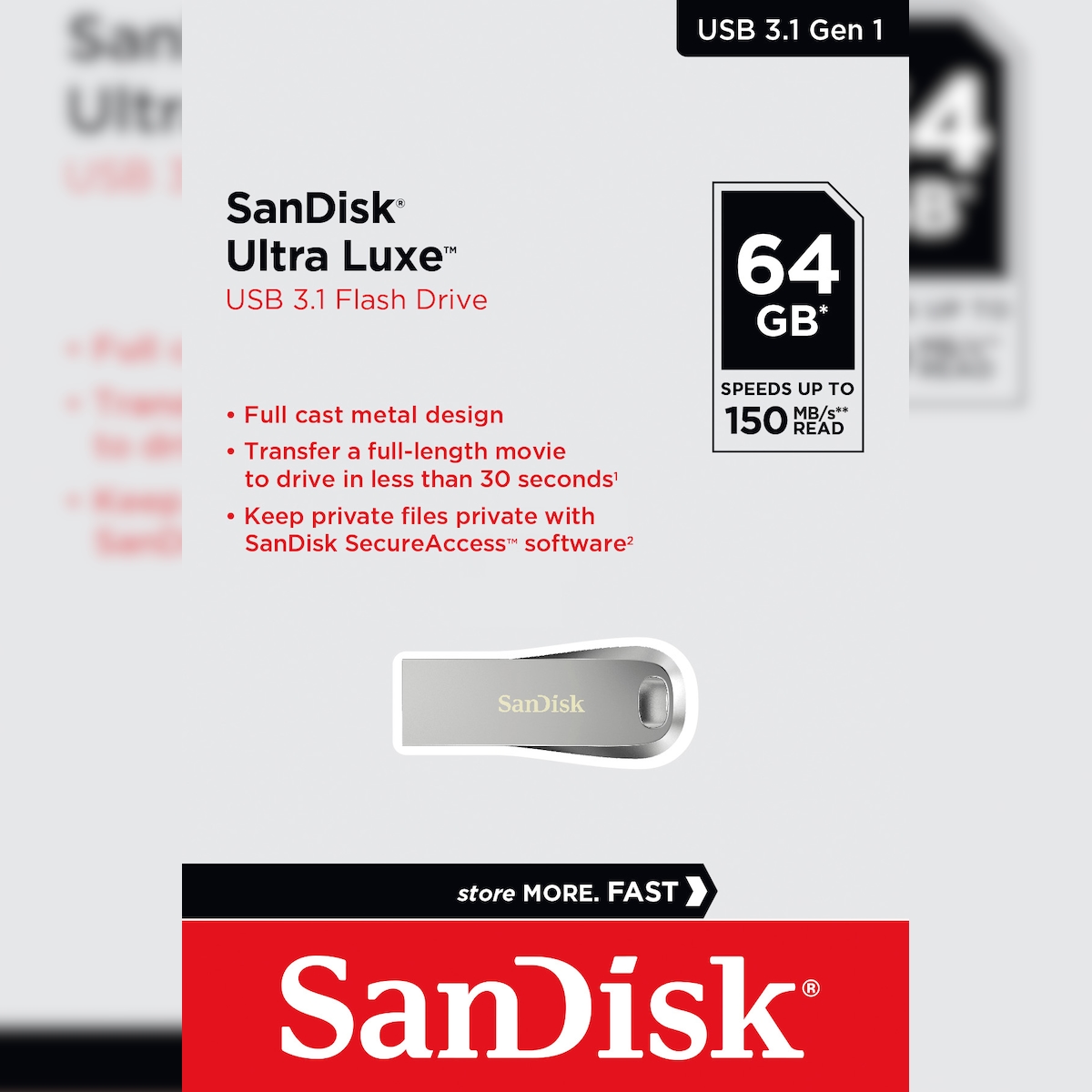 Sandisk USB 3.1 Stick 64GB, Ultra Luxe Typ-A, (R) 150MB/s, SecureAccess, Retail-Blister