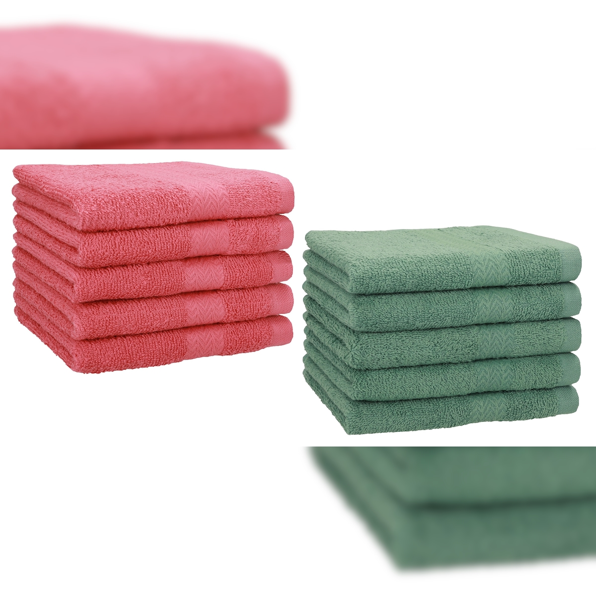 Betz 10 Stück Gästehandtücher PREMIUM 100% Baumwolle Gästetuch Set 30x50 cm himbeere und tannengrün