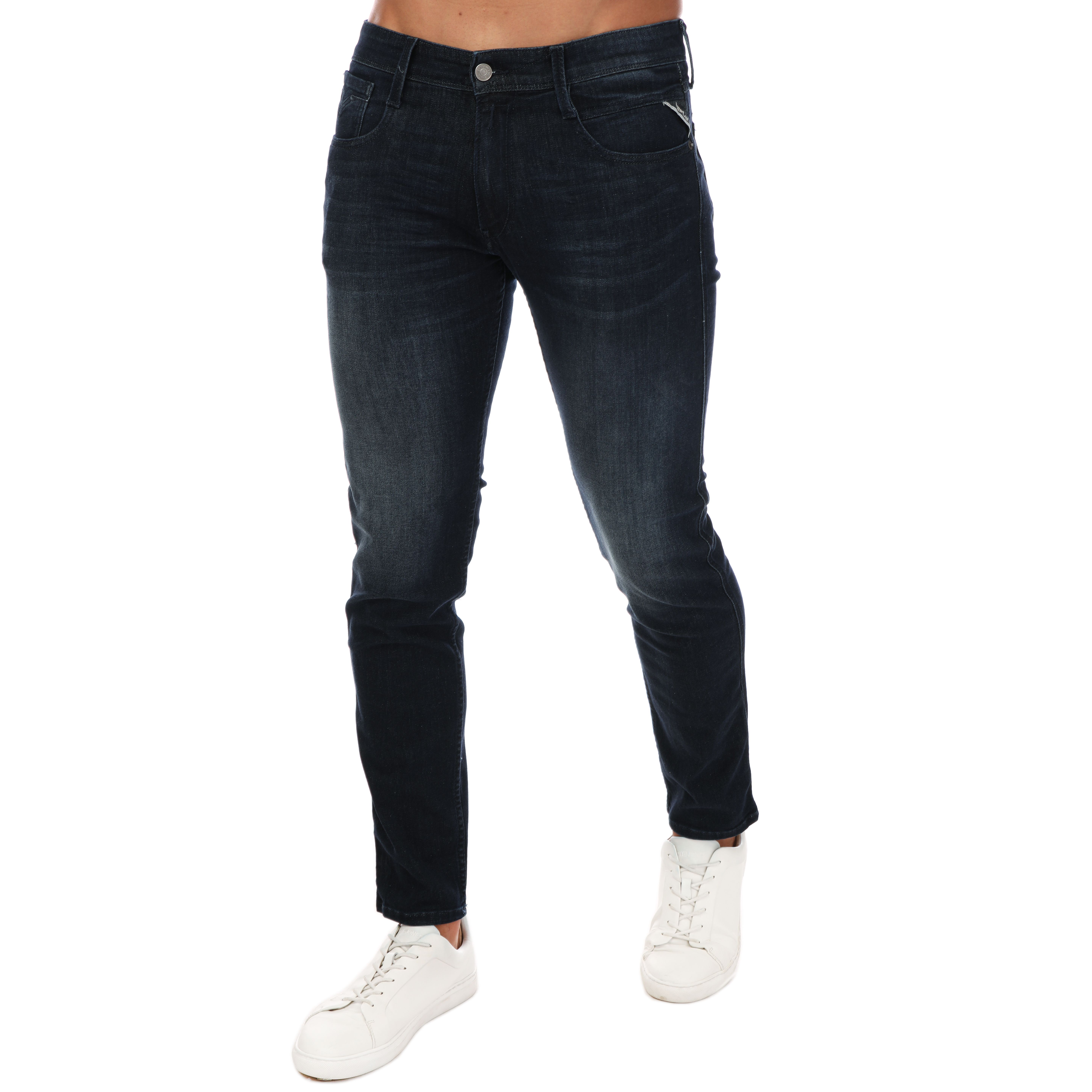 Replay Mens Anbass Power Stretch Slim Fit Jeans in Dark Blue Cotton - Size 32R | Replay Sale | Discount Designer Brands