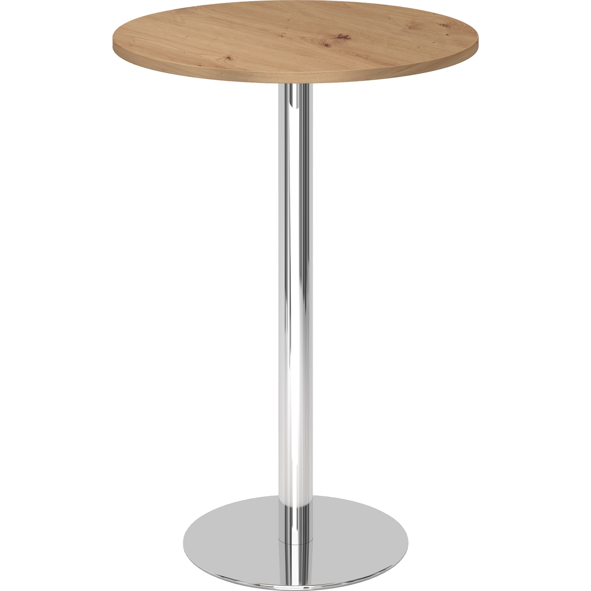 bümö Stehtisch Büro, Bistrotisch rund 80 x 80 cm - Bartisch Asteiche, Stehtisch Holz-Platte, Säule aus Metall verchromt, Buffettisch, Säulentisch,