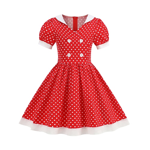 Anni 1950 Hepburn Retrò Vintage Abito a Linea Abito Swing Vestito Svasato Maniche corte A Pois Linea ad A Costume Ragazze Carnevale Mascherata Vacanza Abbigliamento Quotidiano Bambini Vestito Abiti