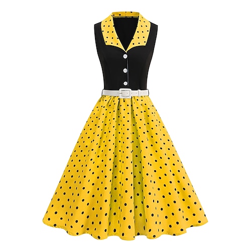 Elegante Classico Anni 1950 Midi Abito a Linea Abito Swing Vestito Svasato Senza maniche Pois Linea ad A Costume Per donna Carnevale Vacanza Abbigliamento Quotidiano Addio al Nubilato Adulti Vestito