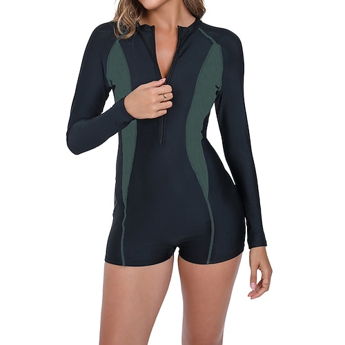 Per donna Top sottomuta Costume da bagno Costume Intero Patchwork Protezione Solare UV UPF50 Manica Lunga Costume da Bagno Con zip Surf Nuoto Primavera