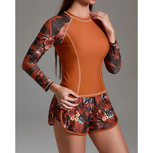 Per donna Top sottomuta Costume da bagno 2 pezzi Tropicale Ultra Leggero (UL) Protezione UV Elastico Manica Lunga Costume da Bagno Con zip Surf Snorkeling Primavera
