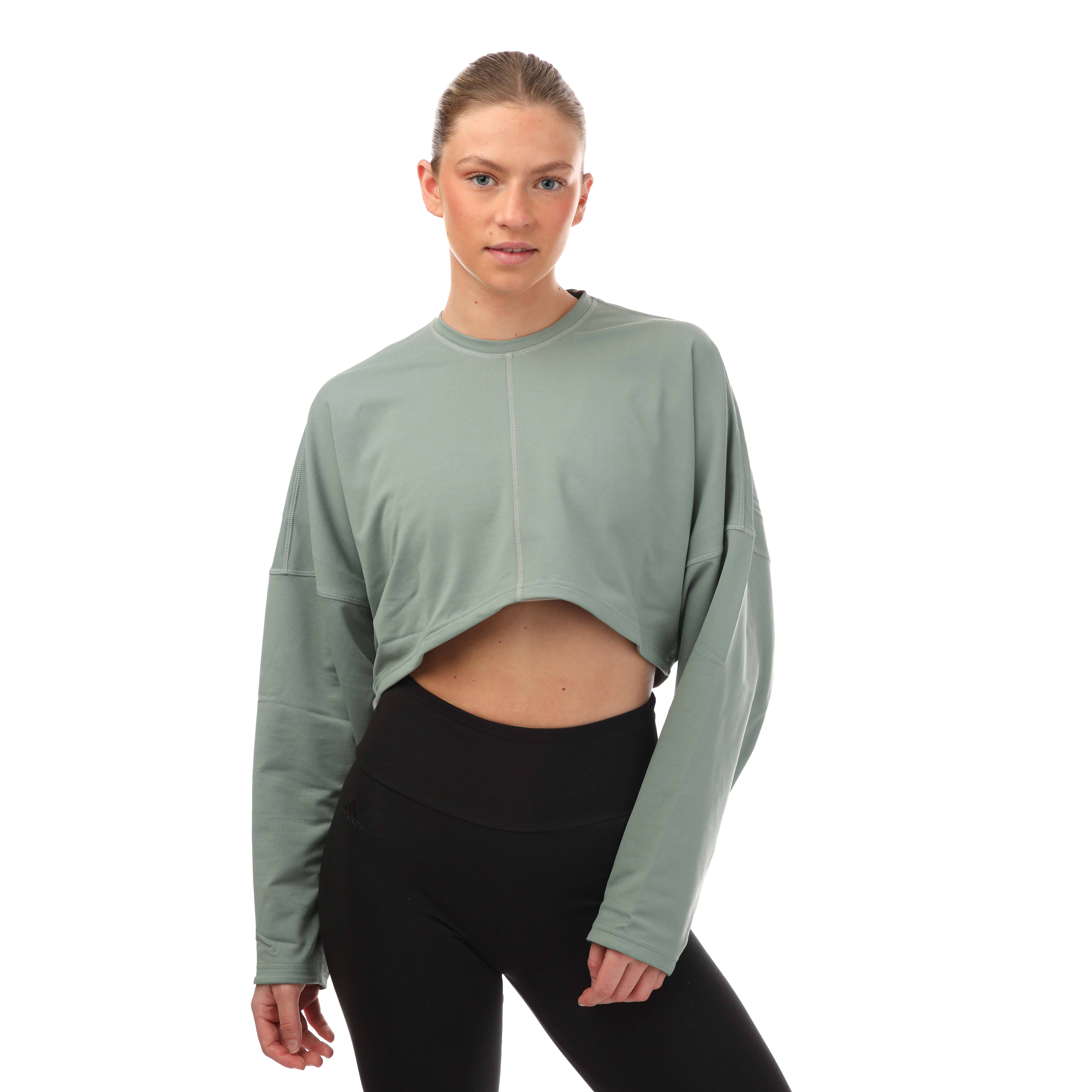 adidas Womens Yoga Studio Cropped Sweatshirt in Green - Size 6 UK | adidas Sale | Discount Designer Brands