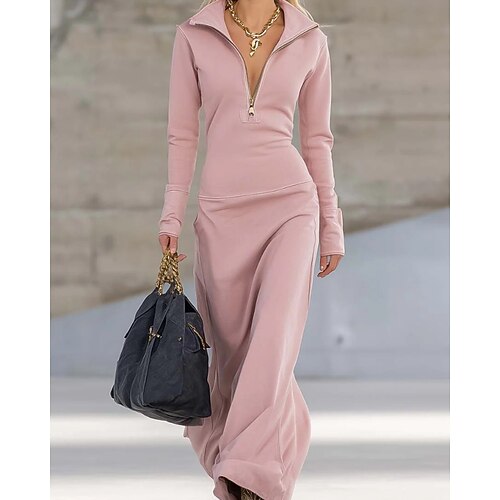 Per donna Abito Lungo Maxi Abito Vestito Casual Moderno Quotidiano All'aperto Uscire Vestibilità regolare Semplice Manica Lunga Colletto a Camicia Nero Rosa Albicocca Azzurro Autunno Inverno