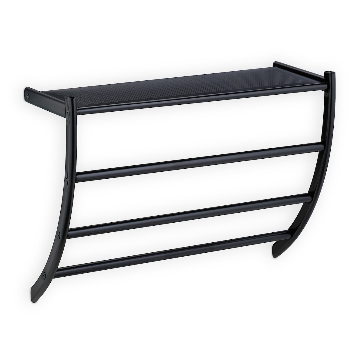 Relaxdays Handtuchhalter Wand, HBT: 44 x 56,5 x 23 cm, mit Ablage & 3 Handtuchstangen, Duschtuchhalter fürs Bad, schwarz