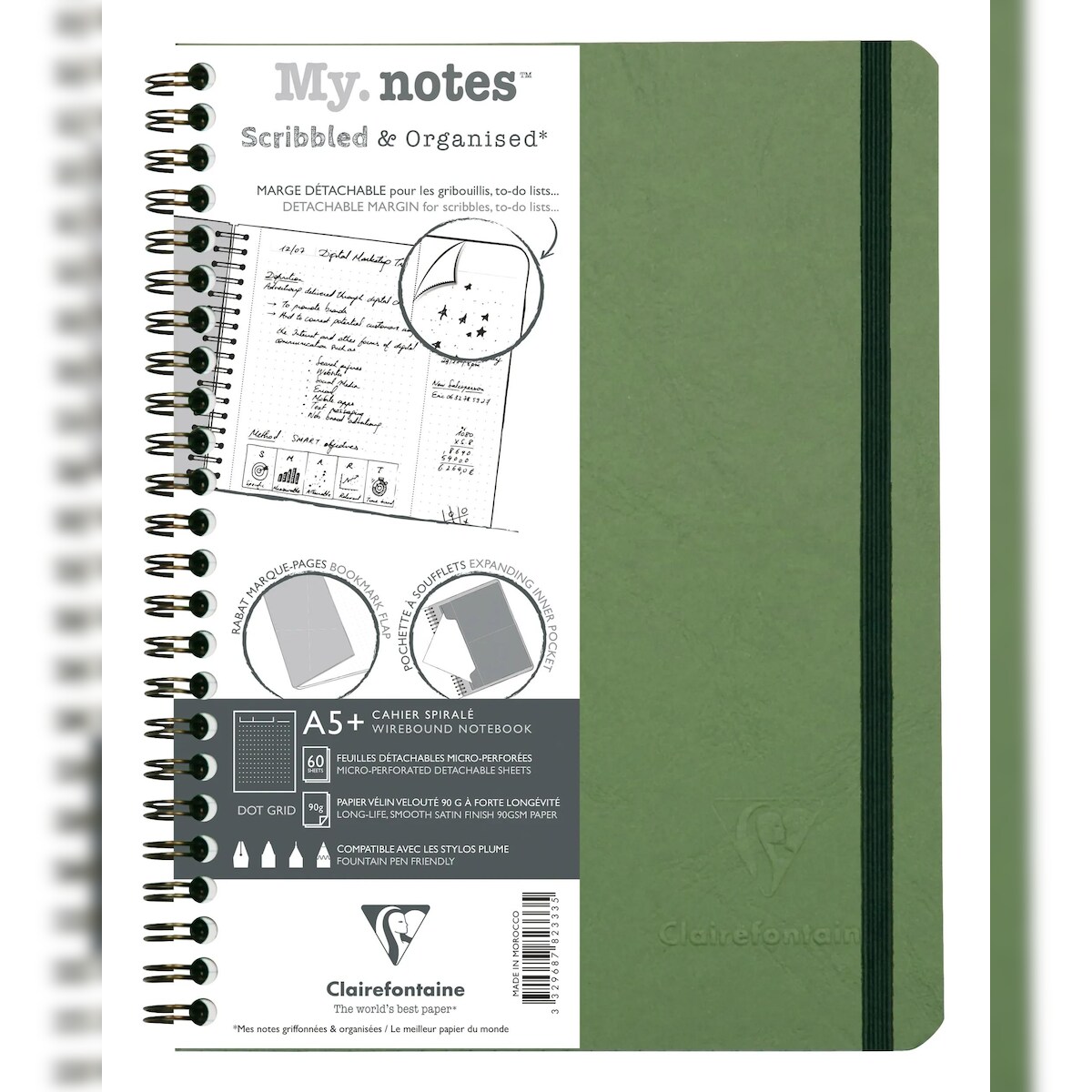 Clairefontaine 5x My.Notes Age Bag, Spiralheft A5+, 60 Blatt 90g, DOT mit Kopfleiste, abtrennbar, mikroperforiert - Grün 782333C