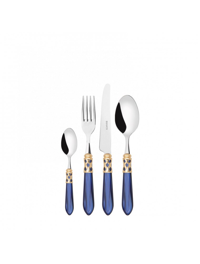 aladdin goldring, 24-teiliges besteckset, blauer griff, galeriebox, casa bugatti