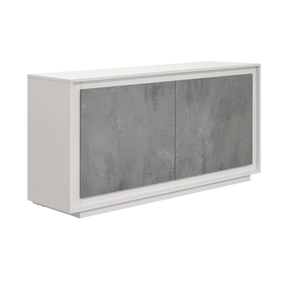 Credenza legno, finitura bianca, ante finitura grigio cemento, 140x50