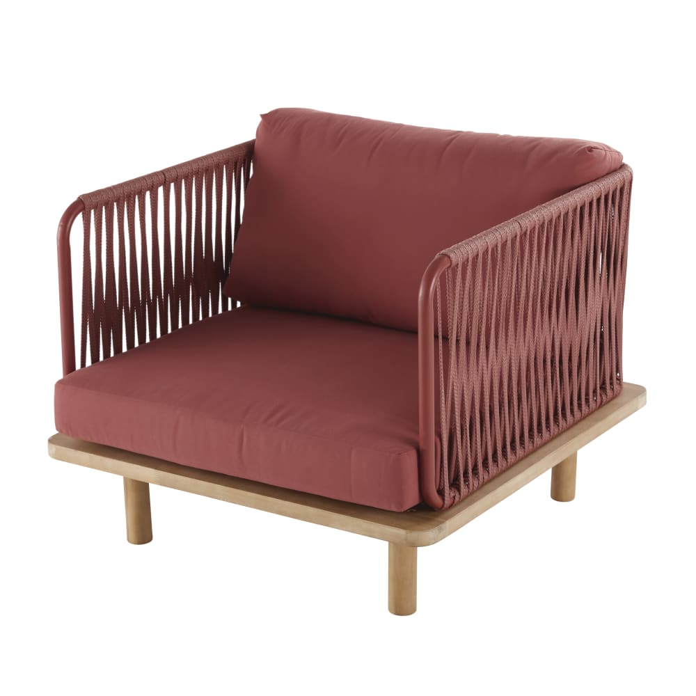Poltrona da giardino in corda intrecciata terracotta e acacia massello