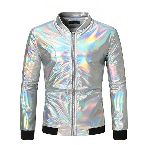Disco Anni '80 Metallico Lucido Cappotto Mascherata Disco Costume Per uomo Halloween Carnevale Mascherata Performance Evento / Festa Club Adulti Cappotto