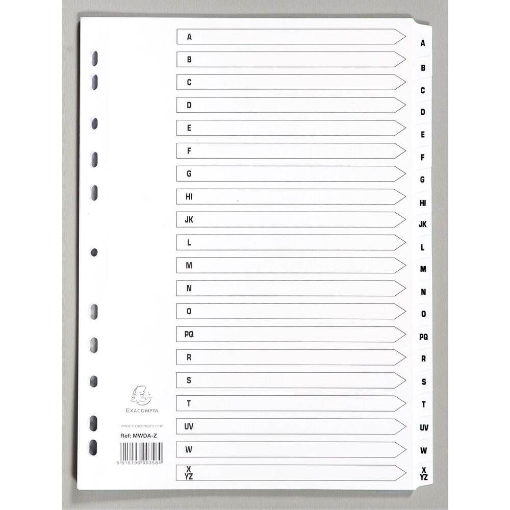 Exacompta Bedruckte Register mit plastifizierten Taben, 20 Taben von A bis Z, DIN A4