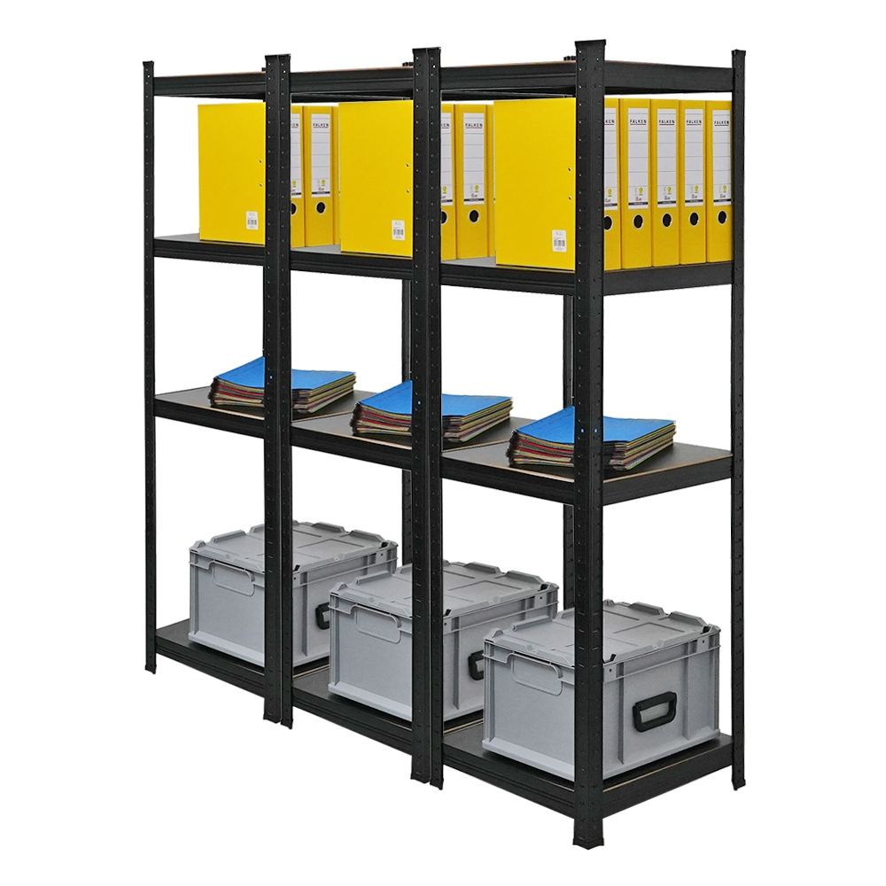 PROREGAL Mega Deal | 3x Schwerlastregal Ares| HxBxT 180x90x40cm | Fachlast 125 kg | Schwarz | Stecksystem Lagerregal Regalsystem 3 Stk.