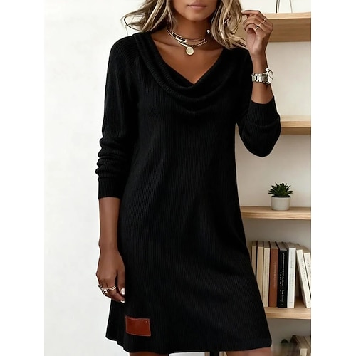Per donna Mini Abito Abito in maglia Tubino Casual Quotidiano Vestibilità regolare Semplice Manica Lunga Scollo a Cascata Nero Bianco Beige Grigio Autunno Inverno