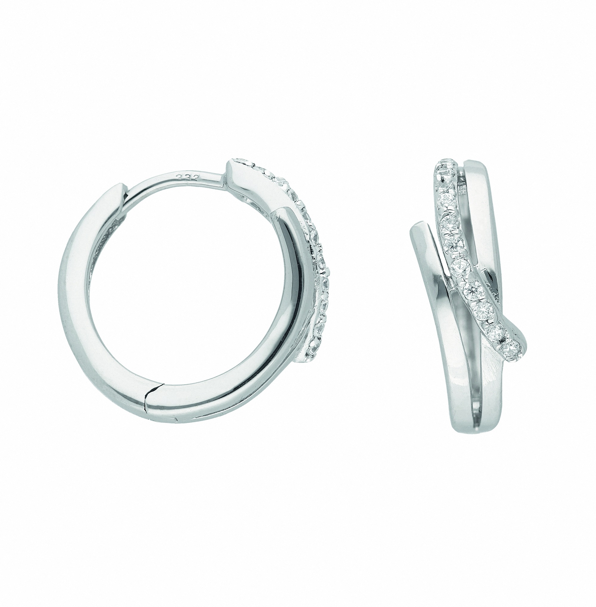 Paar Creolen ADELIA´S "Damen Goldschmuck", silber, Ohrringe, Damen, Damen, Weißgold 333, 333 Gold mit Zirkonia Goldschmuck für Damen