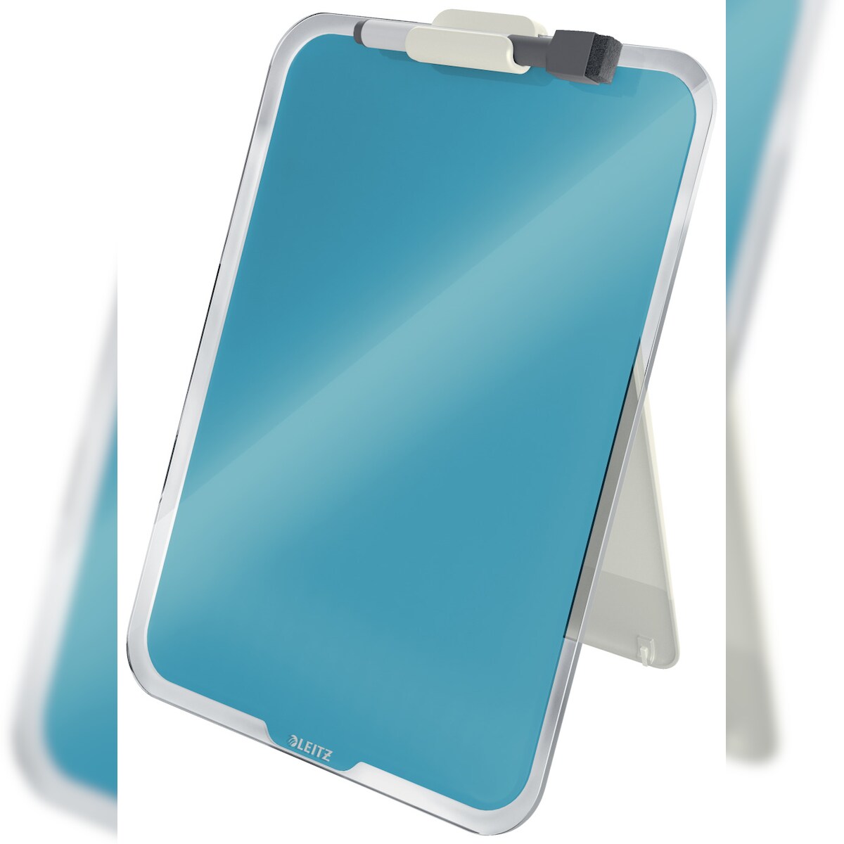 LEITZ Desktop-Notizboard Cosy, A4, blau, Sicherheitsglas, trocken abwischbar, inkl. Marker mit Wischer und Stifthalter