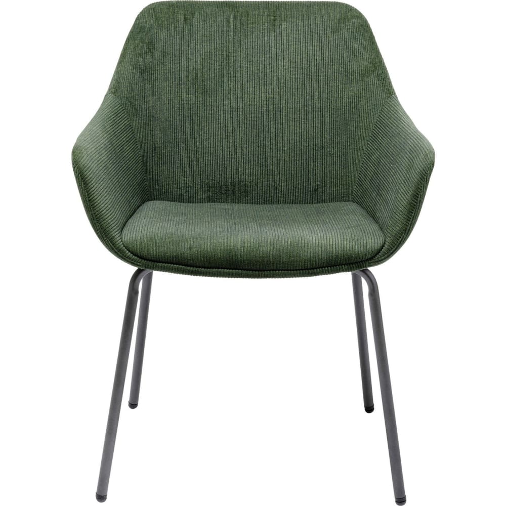 Chaise avec accoudoirs en velours côtelé vert et acier