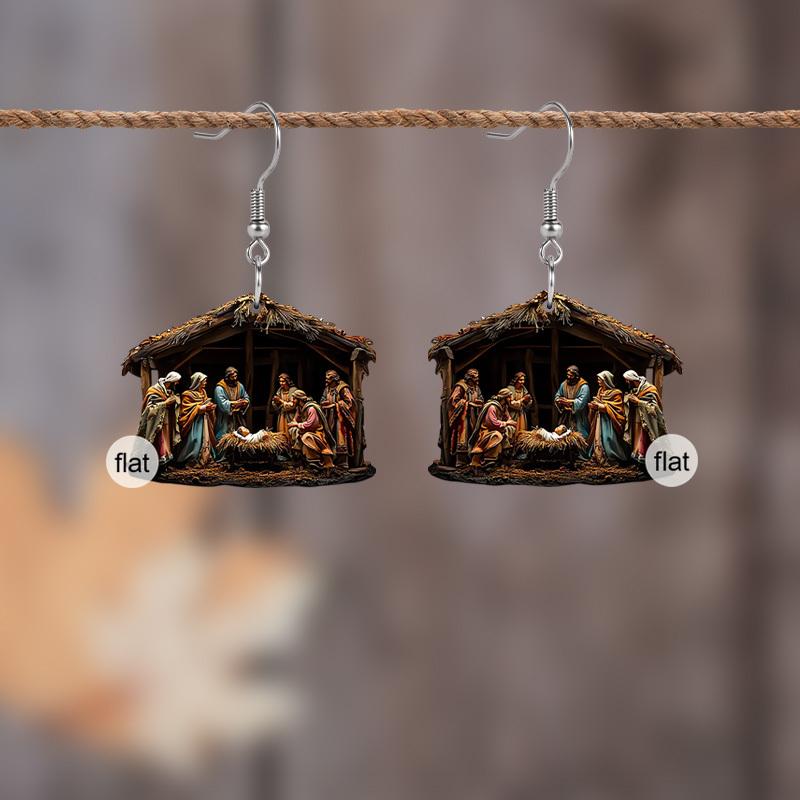 2D Flat Julekrybbe Epifani Jesus Krybbe Mønster Kristent Ånd Religiøst Maleri Akryl Ørering Smykker for Kvinner Kvinne