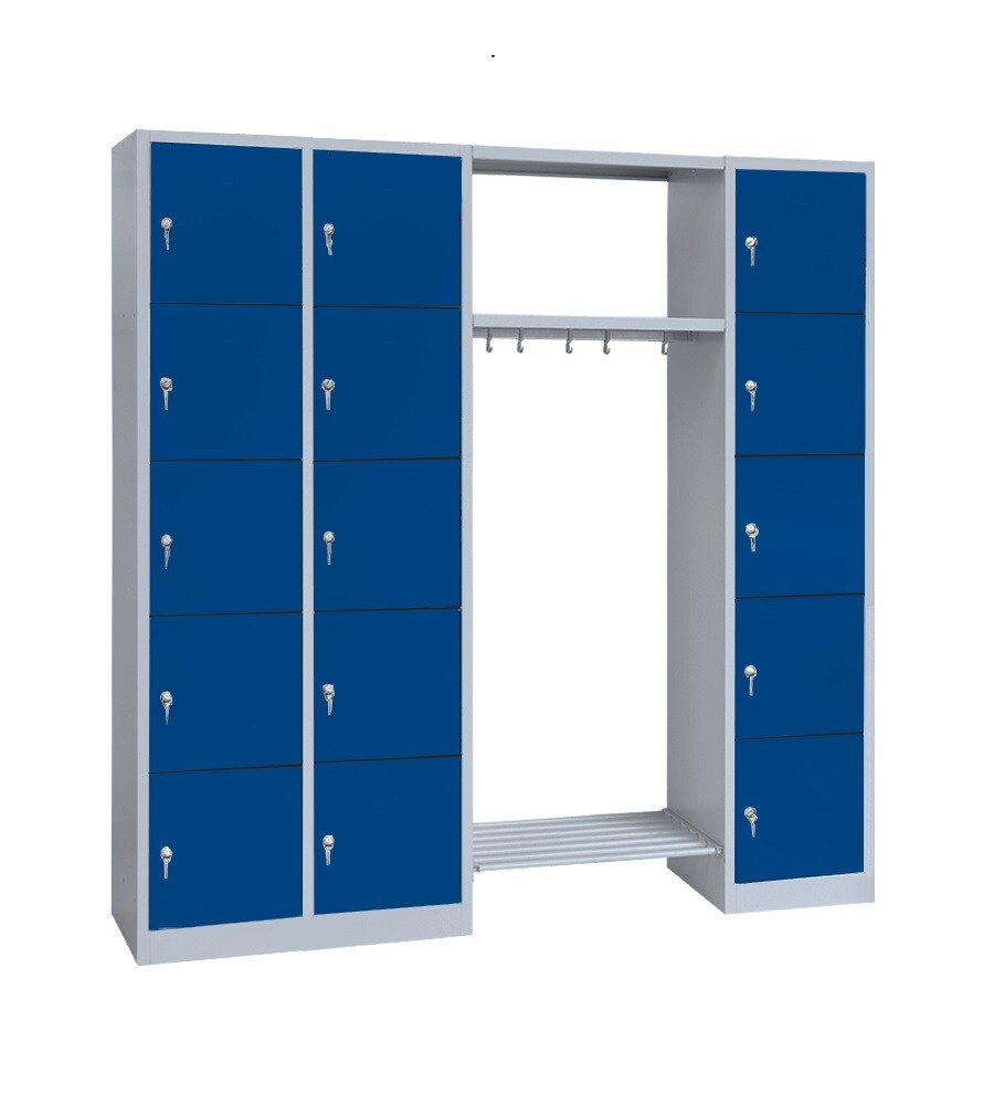 Lüllmann® Garderobe, 2 Abteile links, 1 Abteil rechts, je 5 Fächer, 1800 x 1915 x 500 mm, lichtgrau/enzianblau