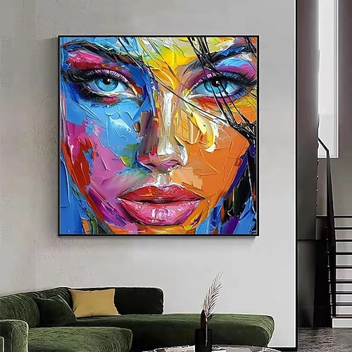 dipinto a olio fatto a mano acrilico tela decorazione da parete pop art viso di donna coltello disegno per arredamento casa dipinto arrotolato senza cornice non allungato