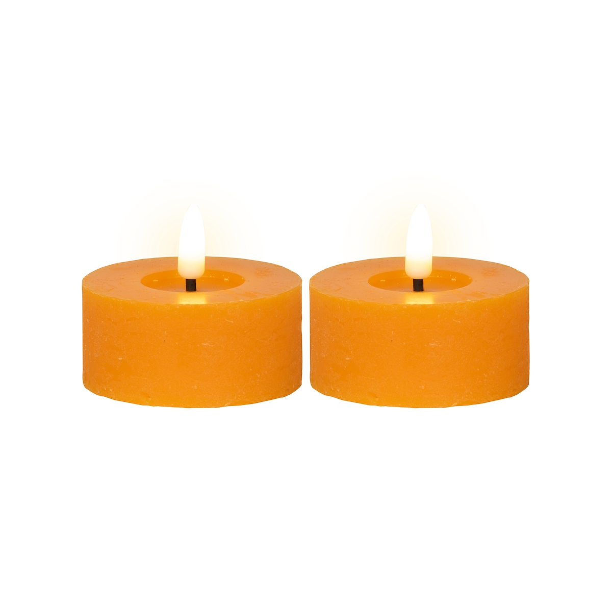 Lumineo 2 LED Teelichter 7x6cm Wachskerzen Timer Flammenlose Teelichtkerzen Warmweiß Tischkerzen Wachs Dekokerzen Teelicht Kerzen Timerfunktion Warm Orange