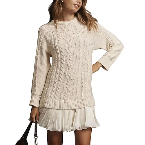 Per donna Mini Abito Abito in maglia Vestito Casual Elegante Moda Moderno Quotidiano All'aperto Vacanza Vestibilità regolare Semplice Manica Lunga Girocollo caramello Crema Blu marino Autunno Inverno