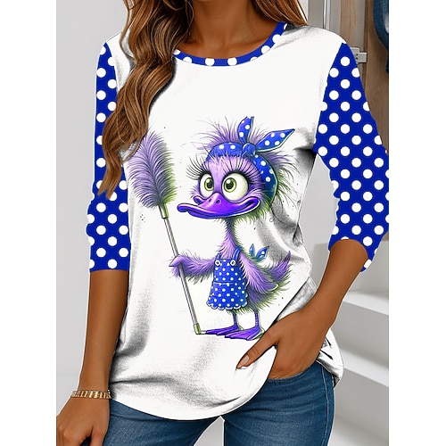Per donna Maglietta Grafico Cartoni animati A Pois Vintage Elegante Classico Manica Lunga Girocollo Top Regolari Quotidiano Stampato Rosso Blu Viola Verde Primavera Autunno Inverno