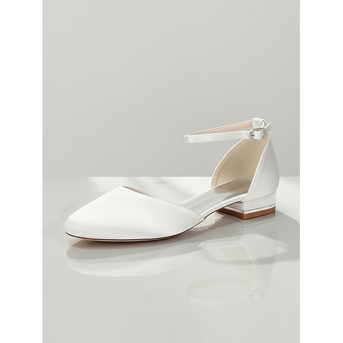 scarpe basse con cinturino in cristallo bianco e punta slingback per la sposa – eleganti scarpe da sposa e da damigella in raso con tacco basso