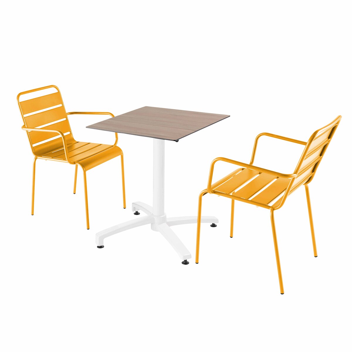 Oviala Business Set Terrassentisch Laminat Eiche hell und 2 Sessel gelb