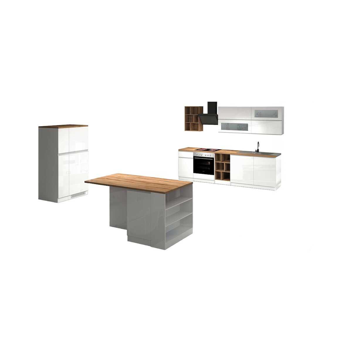 Dmora Vollständige Küche Daquilant, Set mit Speisekammer, Küchenzeile Schrank, 100 % Made in Italy, Glänzendes Weiß und Eiche