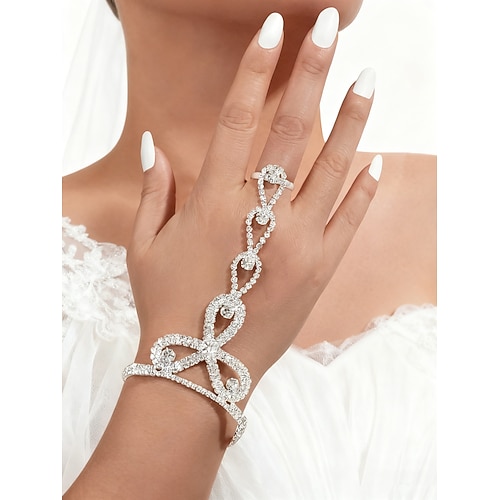 Bracciale da sposa con catena a mano in strass da donna con anello - gioielli da sposa in cristallo scintillante per spose e damigelle occasioni formali