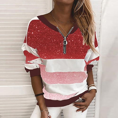Per donna Felpa Pullover Felpe con cerniera A Pois Blocco di colori Semplice Elegante Caldo Moda Manica Lunga Girocollo Top Regolari Casa Lavoro Streetwear Patchwork Stampato Zip a un quarto Blu Nero