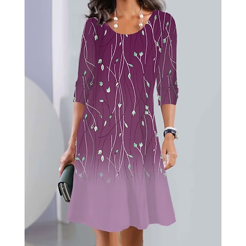 Per donna Abito Midi Abito Floreale Abito Stampato Classico Moderno All'aperto Vacanza Ferie Vestibilità regolare Fiore Manica 3/4 Girocollo Blu Rosa Blu marino Fucsia Autunno