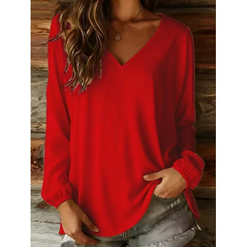 Natale Per donna Blusa Tinta unica Elegante Affari Manica Lunga Scollo a V Top Regolari Quotidiano Bianco Vino Marrone Estate Primavera Autunno
