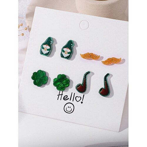 set di orecchini da donna in acrilico per il giorno di San Patrizio, divertenti disegni di folletti, boccali di birra e trifogli, perfetti per il giorno di San Patrizio, il carnevale e l'uso quotidiano