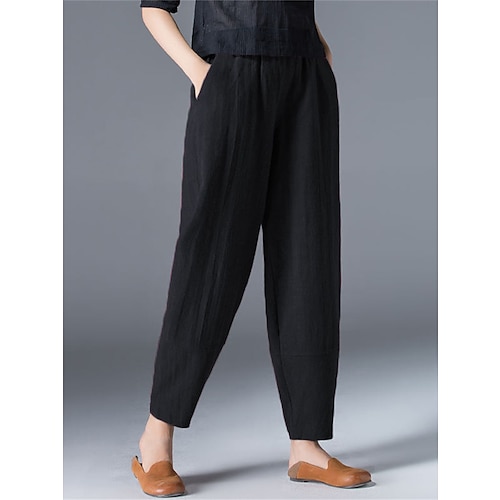 Per donna Pantaloni in cotone e lino Culotte Pantaloni Larghi Streetwear Semplice Casual Lunghezza alla caviglia Misura del girovita medio Semplice Tasca Elastico in vita Baggy Morbido All'aperto