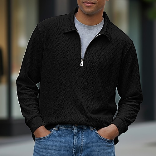 Per uomo Felpa Pullover Polo con zip Vacanza Streetwear Con cerniera Manica Lunga Moda Essenziale Geometrico Semplice Moda Primavera Autunno Tutte le stagioni Vestibilità regolare Nero Bianco Kaki